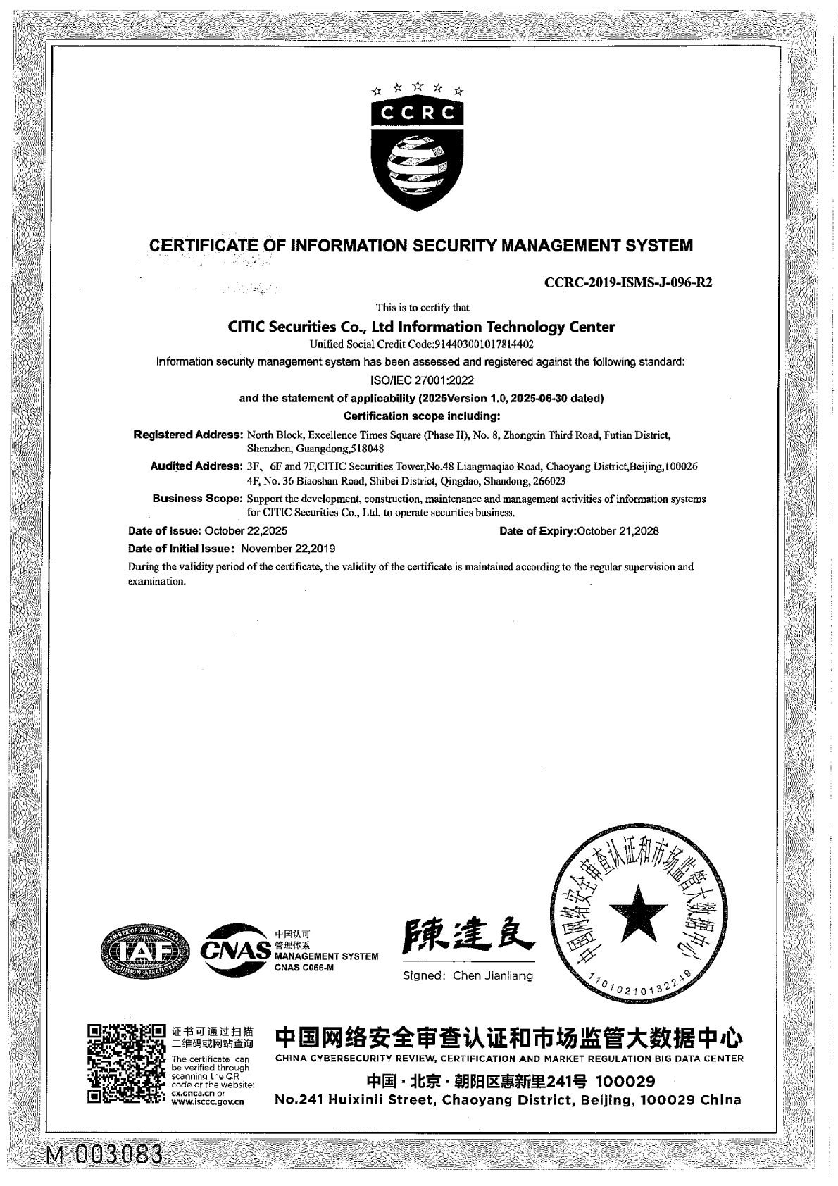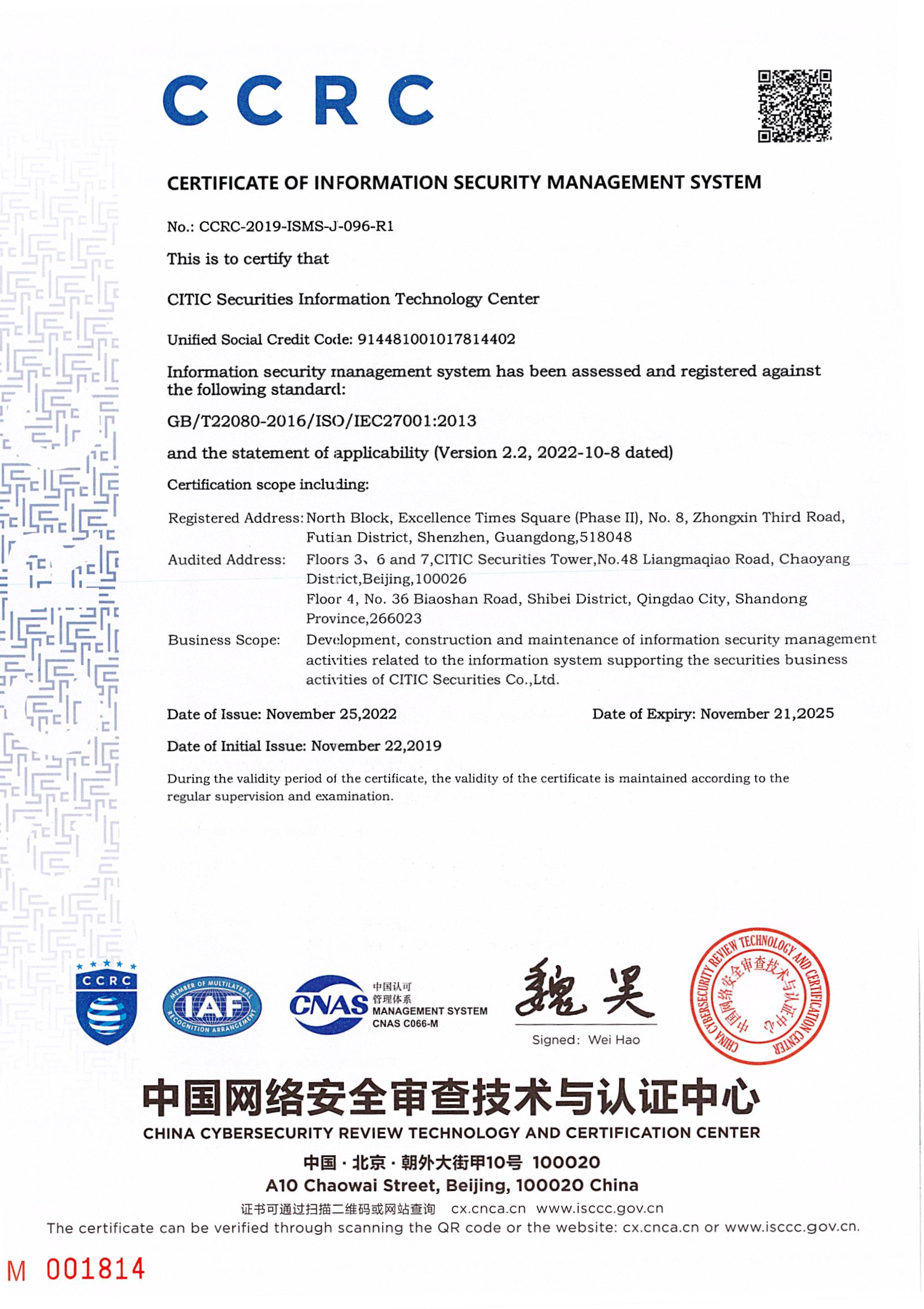 CITIC Securities Company Limited (hereinafter referred to as “CITIC Securities”, or the “Company”) deeply recognizes the materiality of corporate data security and personal information protection for the financial services industry, and regards it as the core cornerstone of the Company's compliance operation. In order to effectively protect the legitimate rights and interests of customers and regulate the entire process of data processing, the Company issues this statement in accordance with laws and regulations such as the Securities Law of the People's Republic of China, the Cybersecurity Law of the People's Republic of China, the Data Security Law of the People's Republic of China, the Personal Information Protection Law of the People's Republic of China, and the Measures for the Information Technology Management of Securities Fund Operators.
