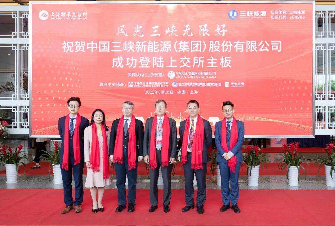 2021年6月10日,中国三峡新能源(集团)股份有限公司(“三峡能源”,600905.SH)完成首次公开发行股票并在上交所主板上市,中信证券担任独家保荐机构和主承销商。中信证券党委书记、董事长张佑君,执行委员会委员、全球投资银行管理委员会主任马尧,全球投资银行管理委员会委员任松涛出席上市仪式。