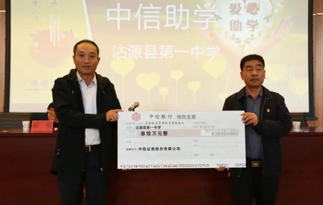 9月25日,中信证券又一次来到河北省张家口市沽源县第一中学,开展一年一度的捐资助学活动。