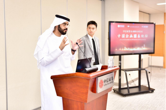 9月4日下午,中信证券携手阿联酋驻华大使馆、阿布扎比投资办公室(ADIO)和阿布扎比哈利法经济园区(KEZAD Group),举办“中信证券、阿联酋驻华大使馆、阿布扎比投资办公室(ADIO)、阿布扎比哈利法经济园区(KEZAD Group)——中国企业圆桌论坛”。此次论坛以中阿建交四十周年为契机,汇聚了众多阿联酋政府机构和中国企业代表,共同探讨在“一带一路”倡议和中阿深化双向合作背景下,如何进一步推动双方在经济、贸易、投资等领域的深度合作。论坛旨在通过深入交流,加强中国企业与阿布扎比投资办公室(ADIO)及哈利法经济园区(KEZAD Group)的合作关系,挖掘企业出海投资机遇,共同探索市场趋势与合作潜力。