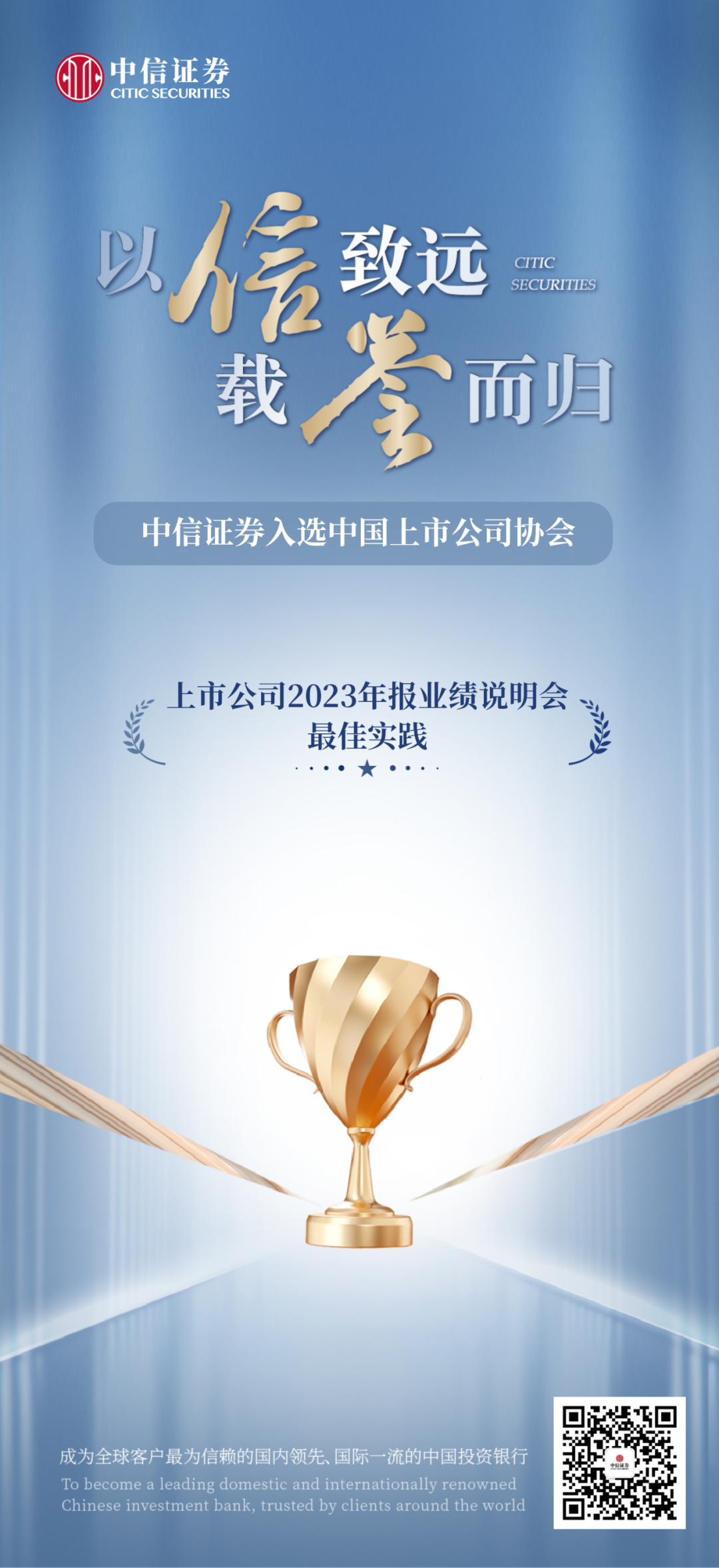 12月3日,中国上市公司协会发布“2023年报业绩说明会最佳及优秀实践”榜单。中信证券连续三年入选“最佳实践”案例。