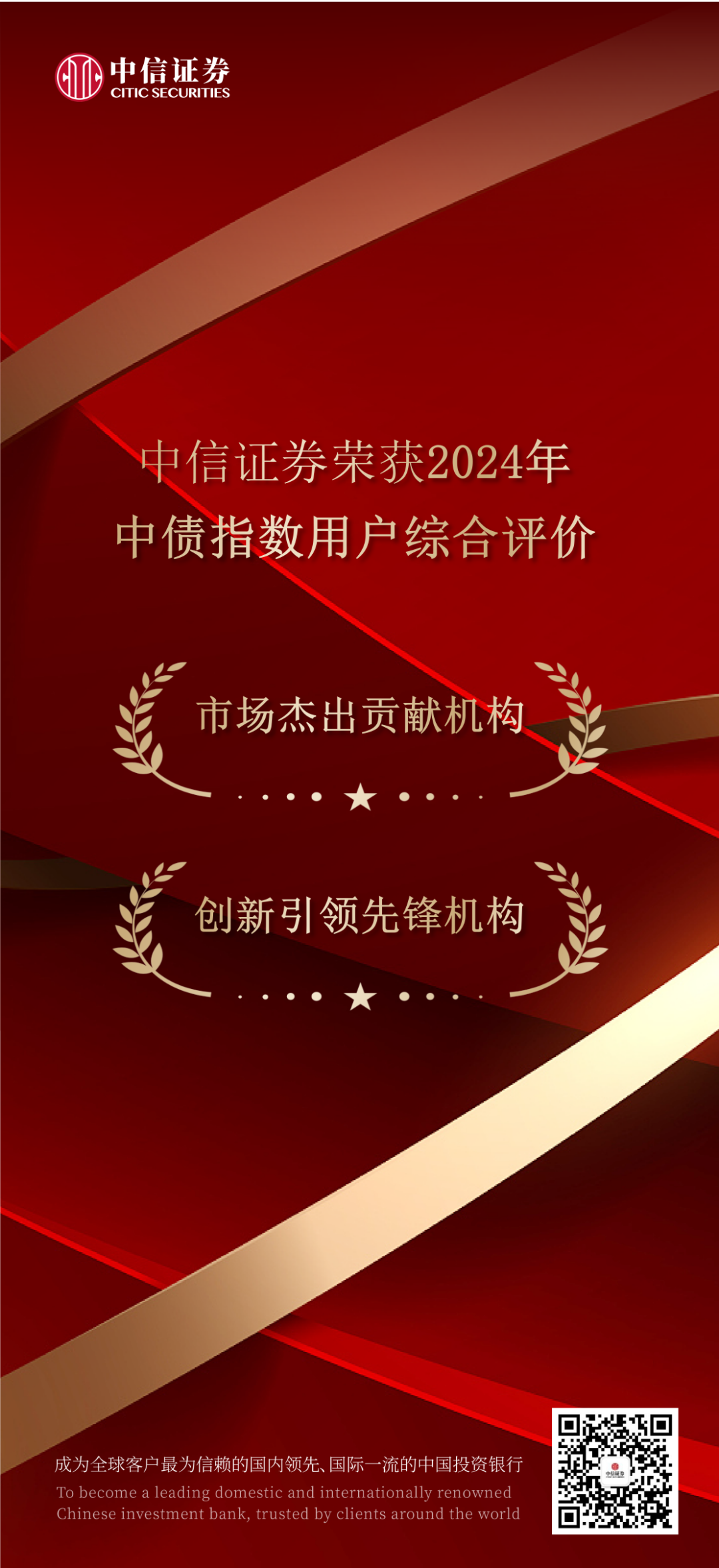 1月6日,中债金融估值中心有限公司发布“2024年度中债指数用户综合评价结果”,中信证券获评“市场杰出贡献机构”和“创新引领先锋机构”。