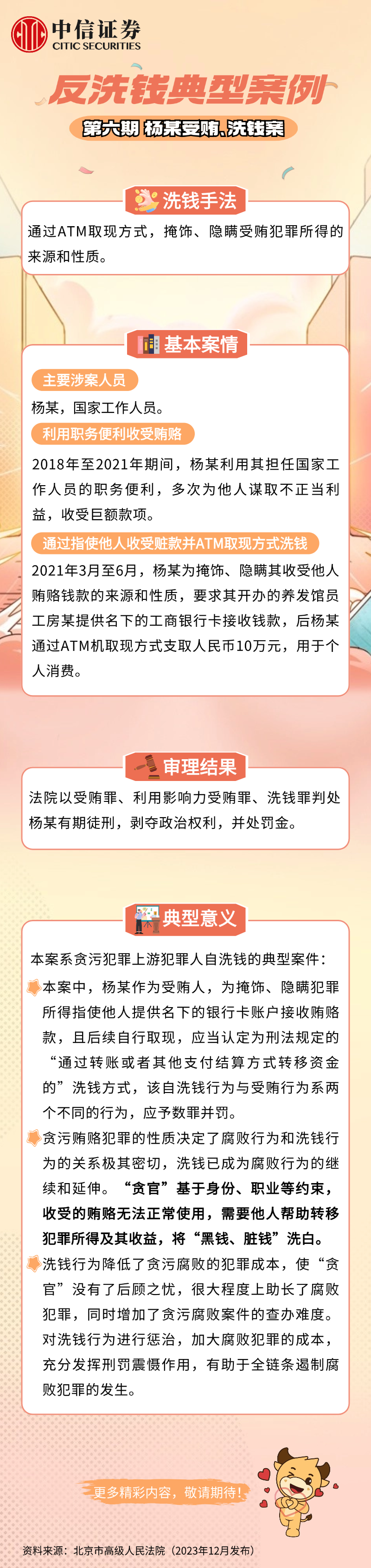 反洗钱典型案例第六期 | 杨某受贿、洗钱案